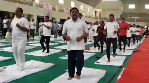 अंतरराष्ट्रीय योग दिवस पर रायपुर स्थित इंदिरा गांधी कृषि विश्वविद्यालय के कृषि मण्डपम में एक पृथ्वी, एक स्वास्थ्य थीम के तहत आयोजित कार्यक्रम में राज्यपाल रमेन डेका के साथ बड़ी संख्या में लोग शामिल होने पहुँचे. स्कूली छात्र-छात्राएँ, विभिन्न संगठनों के कर्मचारी, दिव्यांगजन और ट्रांसगेंडर समुदाय के लोगों ने सामूहिक योगाभ्यास किया.