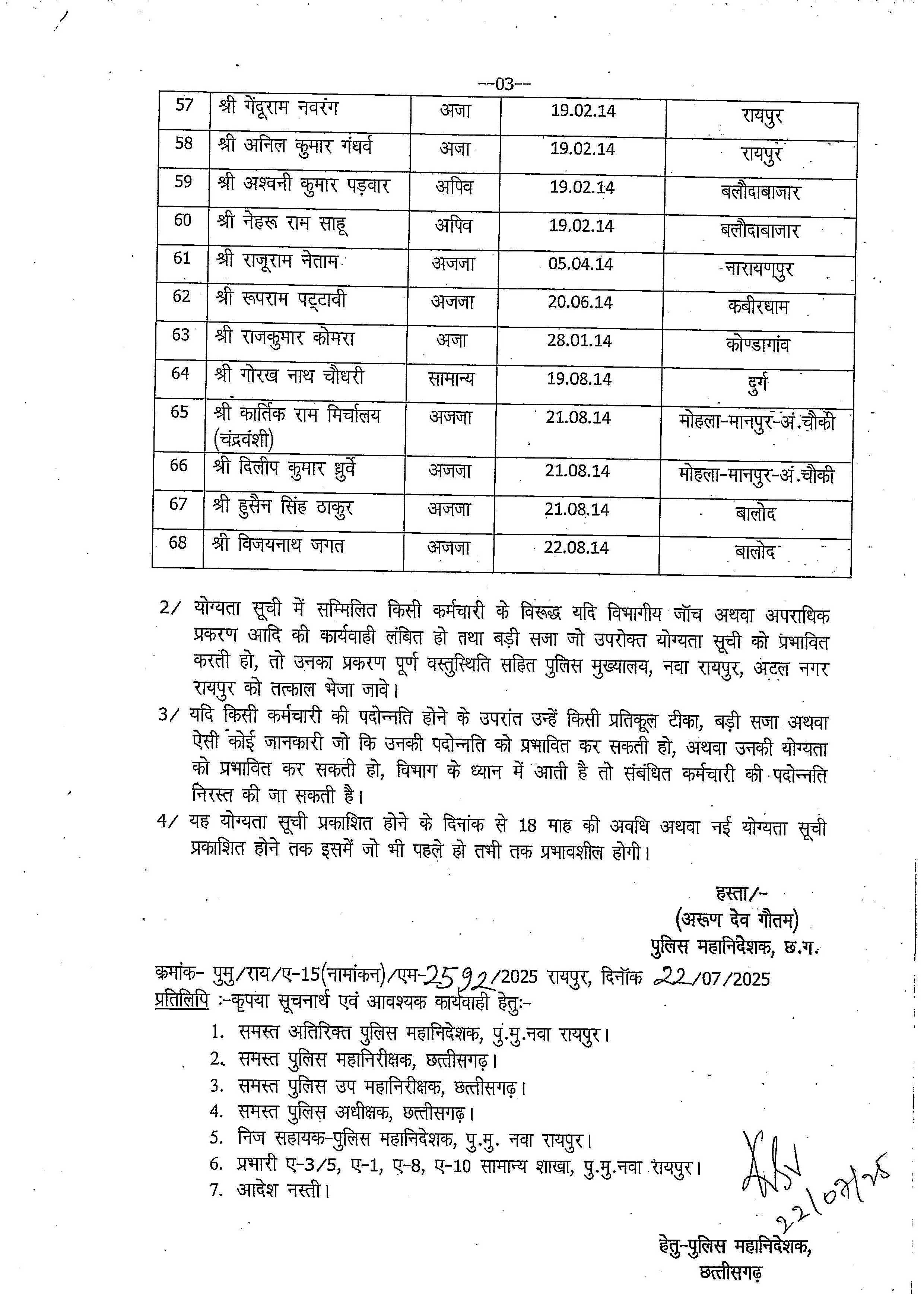 छत्तीसगढ़ ताज़ा खबर एएसआई से एसआई पदोन्नति के लिए योग्यता सूची जारी, 68 पुलिस अधिकारियों के नाम Sandhya 23/07/2025 रायपुर। छत्तीसगढ़ पुलिस विभाग ने 68 एएसआई की पदोन्नति हेतु योग्यता सूची जारी की है। सूची में प्रदेश के कई जिलों के पुलिस अधिकारियों के नाम शामिल है। नीचे देखें सूची.. Post navigation Previous: Gold-Silver Price Today 23 July : आज सोना सस्ता हुआ या महंगा? जानिए आज के सोने-चांदी का ताजा भावNext: विधवा की जमीन हड़पी, कांग्रेस, बीजेपी नेता समेत 7 के खिलाफ कोर्ट ने दिया FIR का आदेश, पुलिस की भूमिका सवालों में… More Stories छत्तीसगढ़ ताज़ा खबर छत्तीसगढ़ में चढ़ा पारा, अस्पतालों में हीट स्ट्रोक वार्ड तैयार…जानिए बचाव Sandhya 09/03/2026 छत्तीसगढ़ ताज़ा खबर गांजा तस्करी का खुलासा: हिस्ट्रीशीटर उदय जैन की पत्नी समेत दो आरोपी गिरफ्तार, गांजा बरामद Sandhya 09/03/2026 छत्तीसगढ़ ताज़ा खबर फिक्स्ड डिपॉजिट के नाम पर बैंक कर्मचारी ने पति-पत्नी से 40 लाख की ठगी, ऐसे दिया धोखा…जानिए पूरा मामला Sandhya 09/03/2026